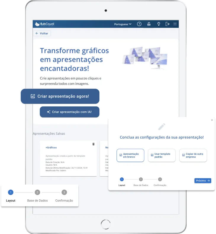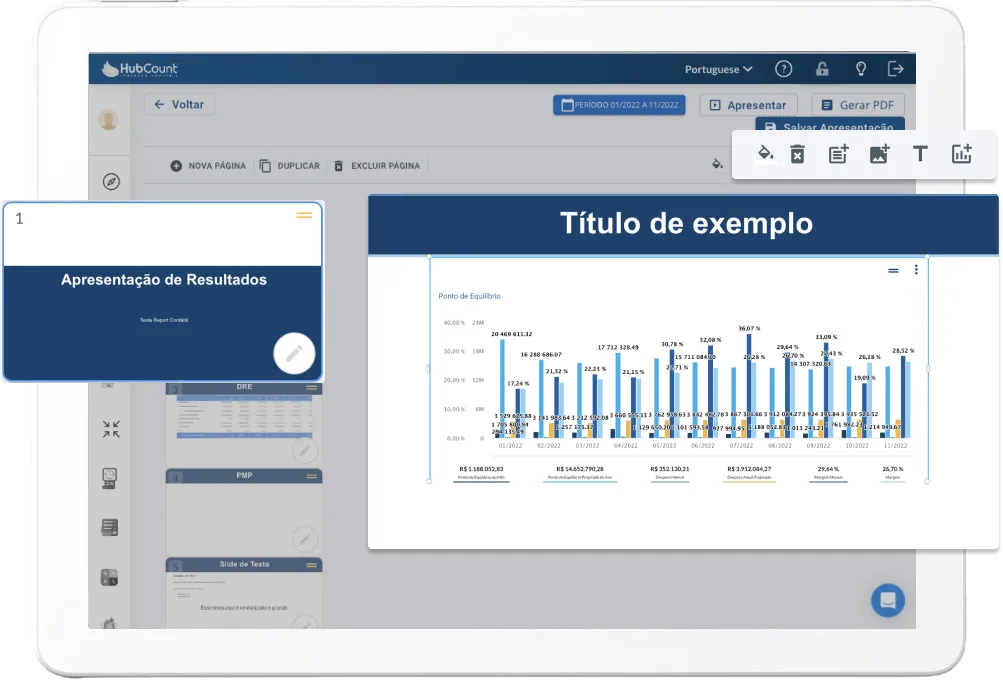 Template sempre atualizado: Crie sua apresentação e reutilize sempre que precisar, com dados atualizados automaticamente. Ajuste apenas se quiser.