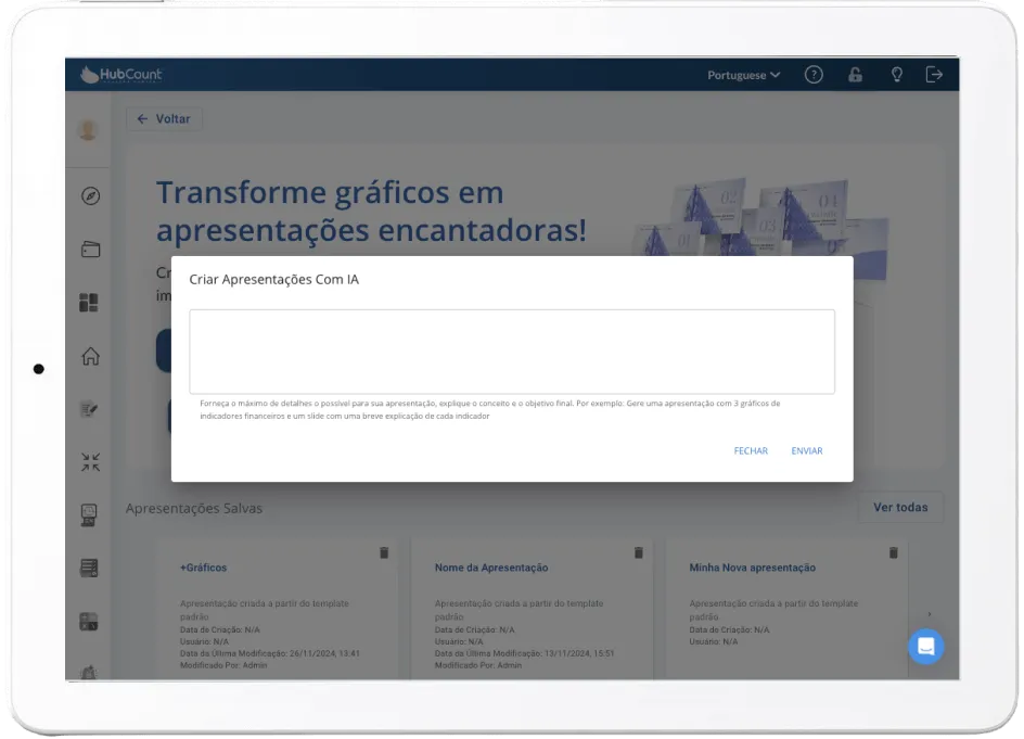 Assim que selecionar, defina o período da apresentação que deseja gerar e adicione o nome que será atribuído à sua apresentação.