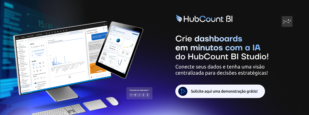 Ferramentas como o HubCount BI Studio, criam dashboards apenas conversando com a IA, além de apresentações, relatórios, tudo com muito mais praticidade. O resultado é uma operação mais fluida, com menos retrabalho e mais confiabilidade nos números.