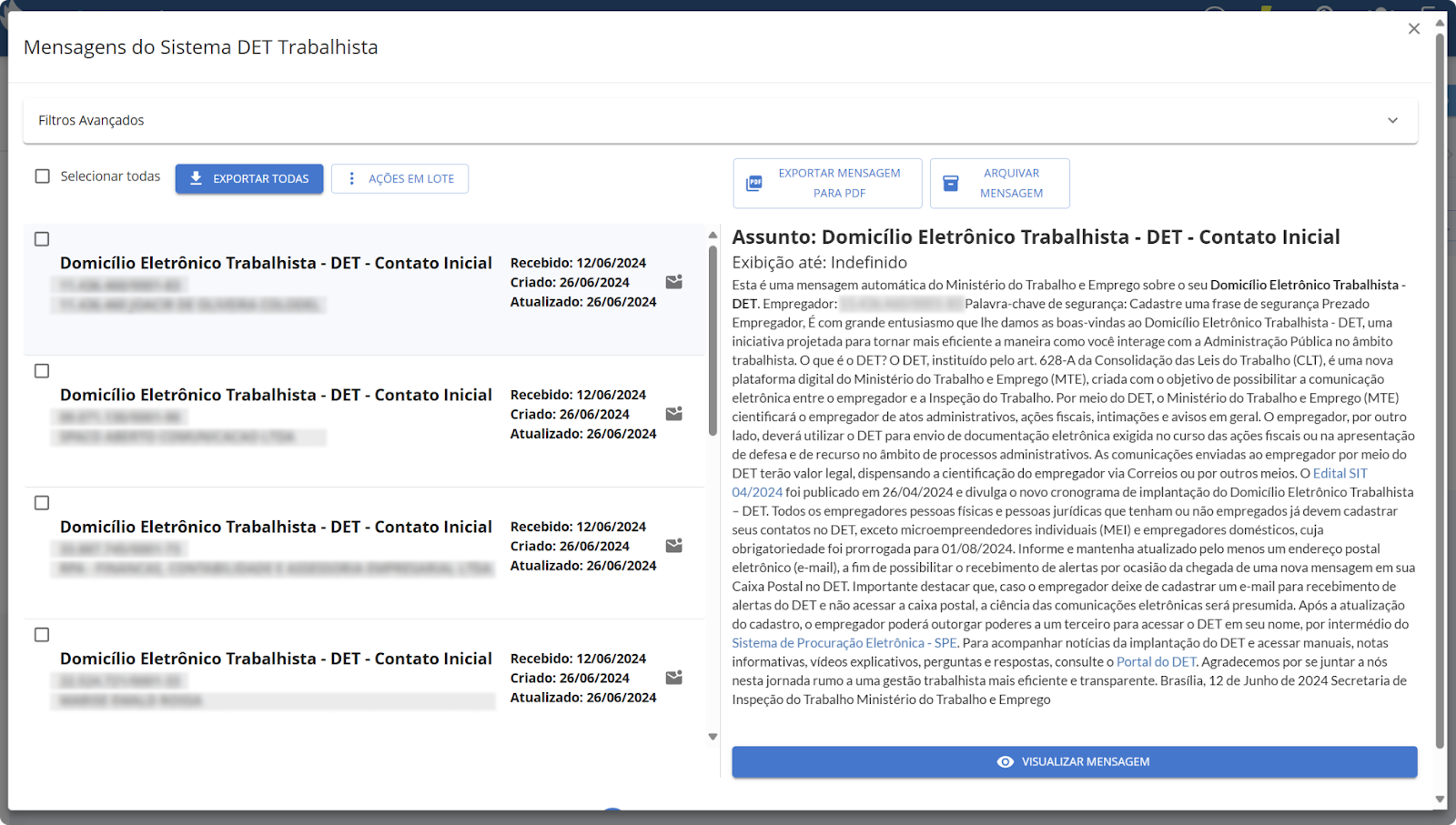 Dentro da nossa solução de automação, você pode monitorar todas essas notificações na funcionalidade exclusiva de mensagens do governo, garantindo que nenhuma informação ou alerta seja perdido.