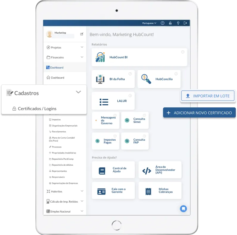 Acesso Integrado: Com o certificado digital cadastrado no BI, integre o acesso às informações fiscais e contábeis e garanta que os dados estejam sempre atualizados.