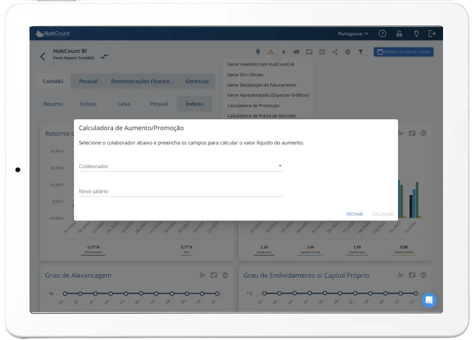 Cálculo preciso: Garante que os ajustes salariais e benefícios sejam feitos de forma exata e com poucos cliques, tornando mais eficiente o processo de promoções na empresa.