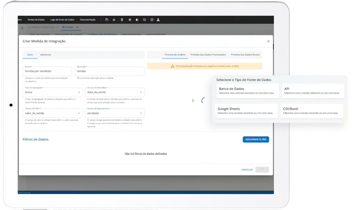1. Escolha a origem – planilhas, ERPs, bancos de dados, APIs ou Google Sheets.