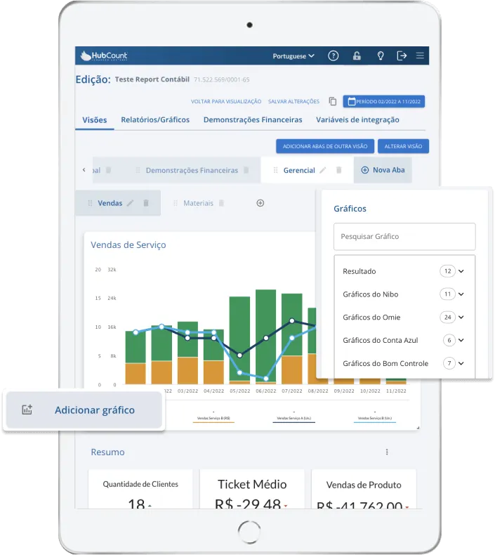 Design personalizável: Customize o design do gráfico conforme sua necessidade, facilitando as análises, comparativos e insights.