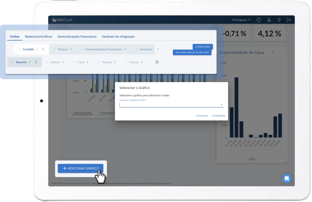 Logo em seguida, no final da página, selecione a opção de “Adicionar Gráfico” e inserir o modelo que acabou de criar. E pronto, o gráfico já irá aparecer na aba que selecionou.