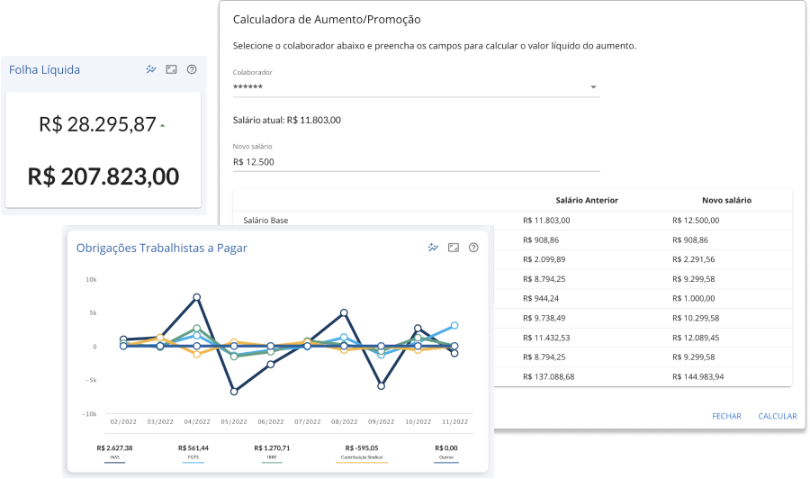 Dados já integrados: Contábil, eSocial, folha, fiscal, tributário. HubCount BI entrega: