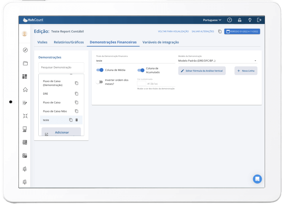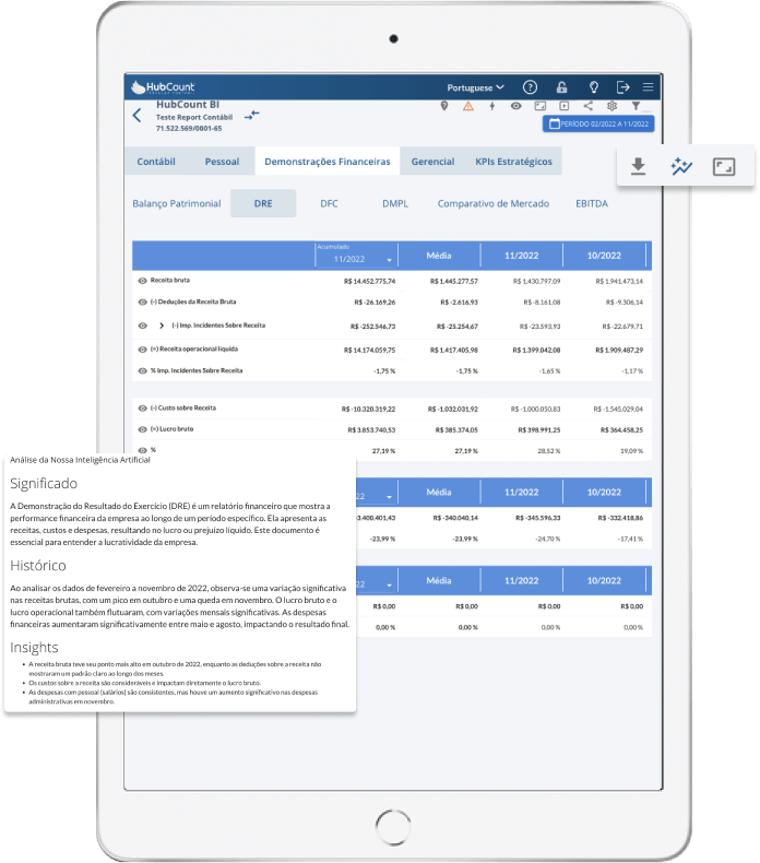Eliminação de erros manuais: As demonstrações financeiras criadas no HubCount BI minimizam os erros comuns de planilhas, garantindo mais segurança ao gerenciar dados.