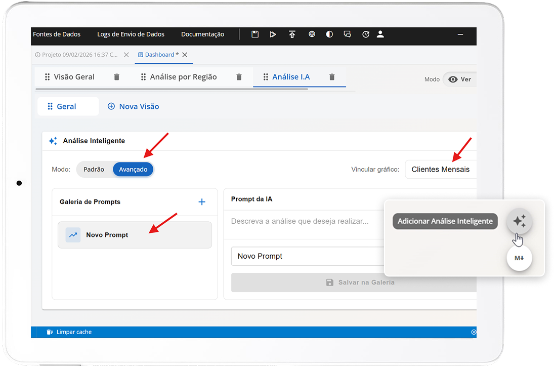 A IA estrutura sua base e disponibiliza dashboards prontos para uso. Você ainda pode personalizar indicadores, criar gráficos e adaptar as visões conforme sua necessidade.